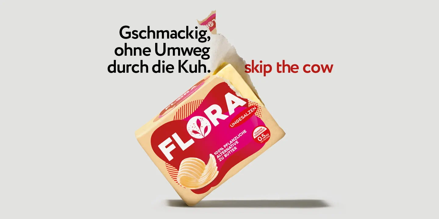 Und wenn man dann darüber nachdenkt, dass Flora bei vollem Geschmack auch noch 100% pflanzlich ist, kann man kaum glauben, dass eben diese Pflanzen sonst durch eine Kuh geschickt werden, um daraus Butter zu machen.