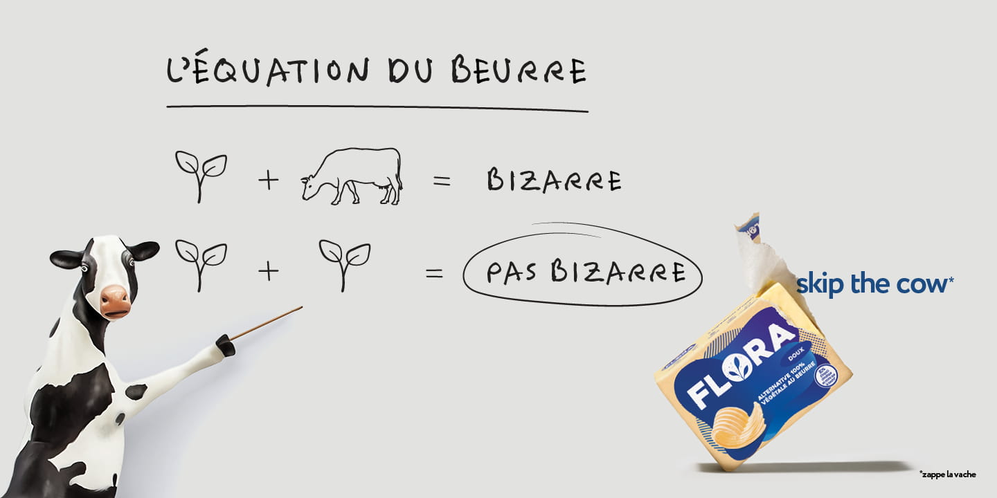 Lorsque vous réalisez que Flora est 100 % végétal, cela ne rend-il pas soudainement un peu bizarre le fait de faire passer des plantes par l'appareil digestif d'une vache pour en faire du beurre ?