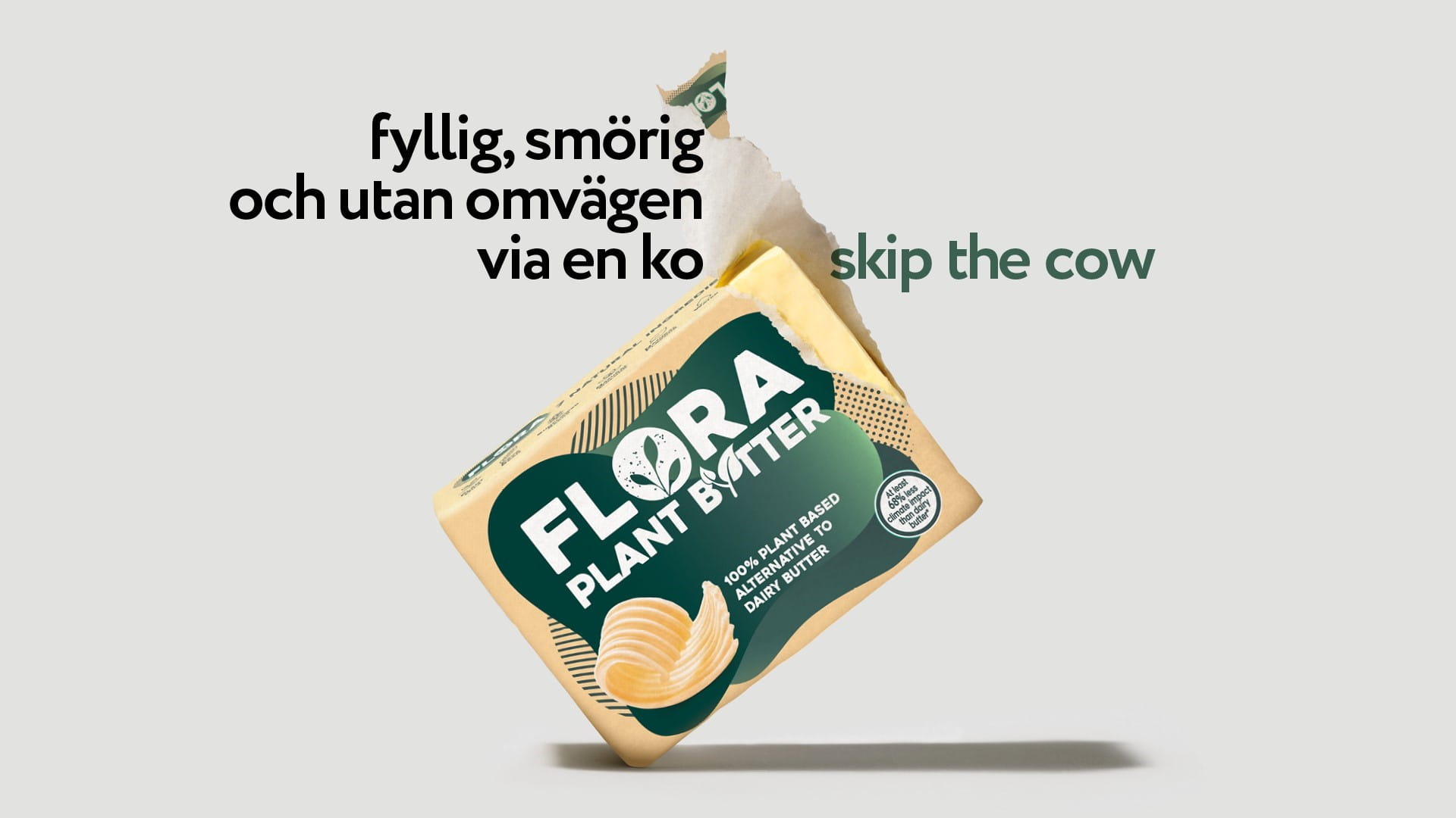 Flora Plant har 74% mindre klimatpåverkan än mejerismör.*