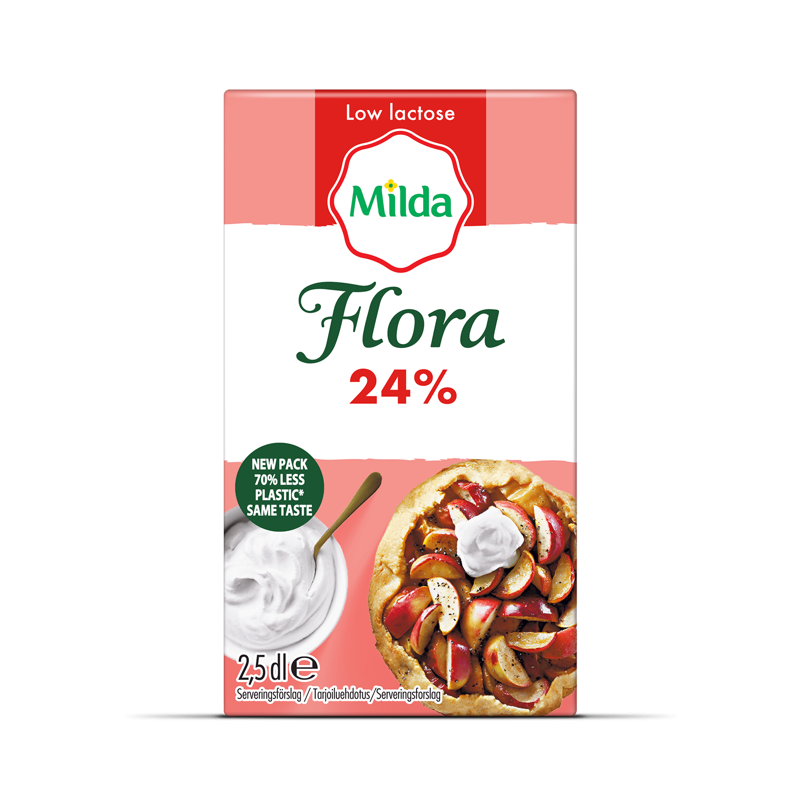 Flora Visp 24% ger dig ett fylligt vispresultat med krämig textur och passar perfekt som tillbehör till pajer, frukt och bär eller andra desserter. För smakrika varma rätter använd istället Flora Mat&Visp 31% för det bästa resultatet.
